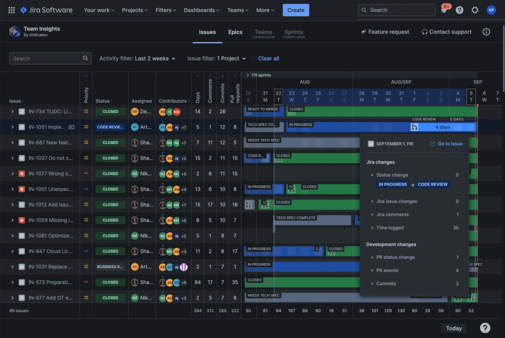 For Kyle, one point of opportunity was understanding plan vs. reality. Did the original plan go as desired? What changed or missed? Why? While their free Bitbucket connector let them see development activity on an individual issue basis, it didn’t allow them to zoom out and get the bigger picture.
